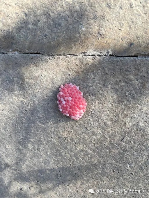 圖4 附著在城市河堤上的福壽螺卵