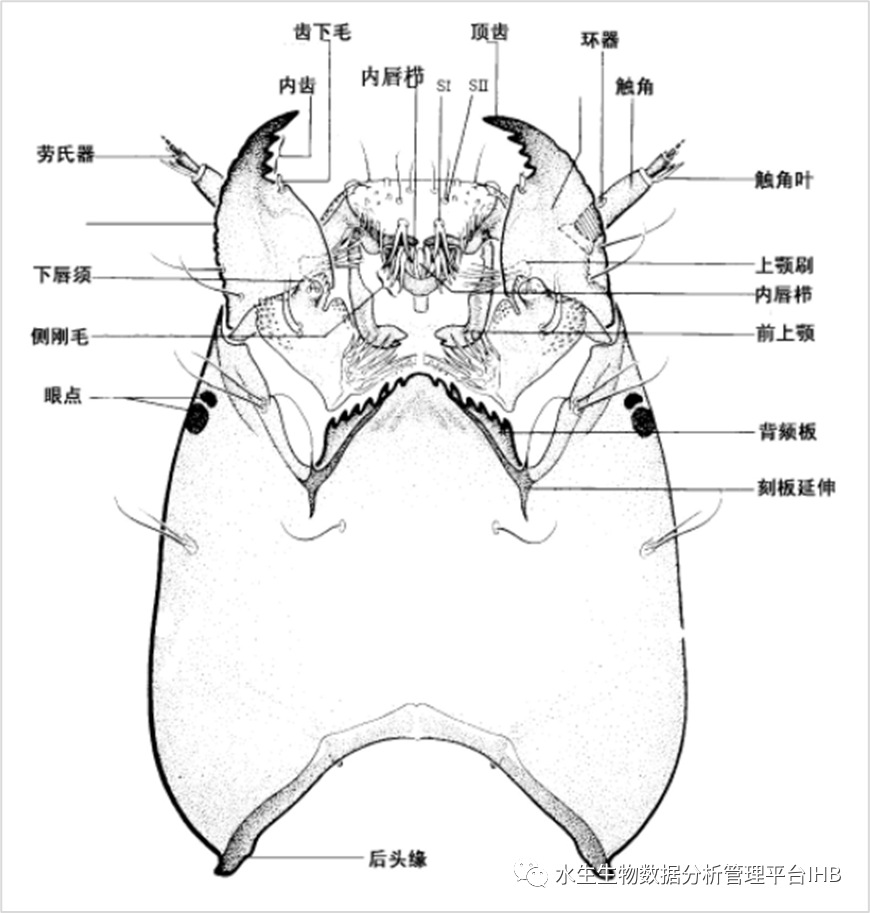 圖2 搖蚊科幼蟲頭部解剖結構示意圖
